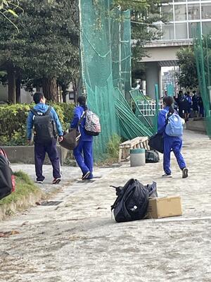 バス内で帰りの方を終えて、今青木中学校に到着しました。