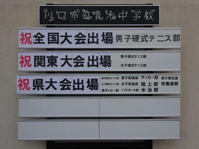 部活動等での青中生の活躍で看板がいっぱいになることを願っています。