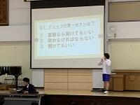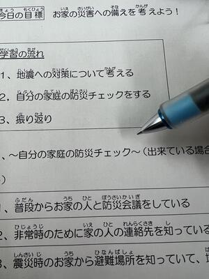 家庭科の授業では、地震について学習しました。タブレットを使って、地震が起きた時どんなことが起きるのかを調べました。