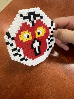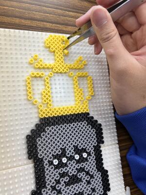 部活ではアイロンビーズで制作しました。タブレットを使って作りたいものを調べたり、自分で考えたりして制作していました。