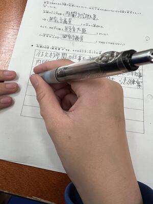 社会の授業では内閣がどのような仕事をしているのかを調べました。