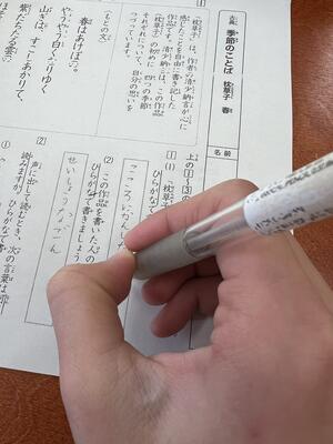 国語の授業では「枕草子」を学習しました。普段使う言葉と違うので、最初難しく感じていましたが最後までがんばっていました。