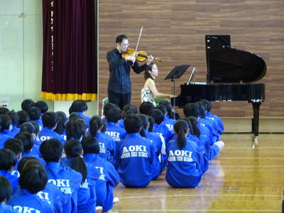 本日5校時に、合唱コンクールで聞くことのできなかった本校卒業生による演奏を行いました。