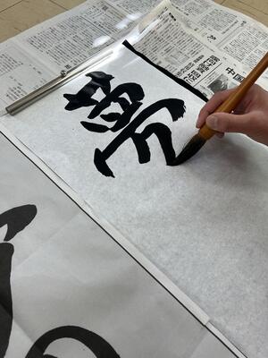 書き初めをしました。お手本を見ながら、ていねいに集中して書いていました。