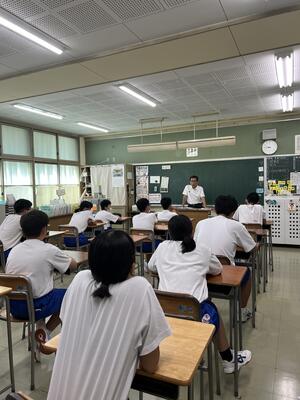 美術の授業では「夏の絵亅というタイトルのもと、絵を描きました。みなさん、夏休みの思い出を絵に描いていました。完成が楽しみです。