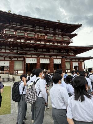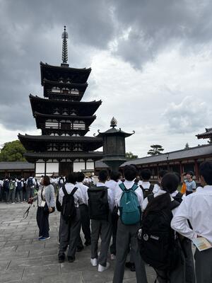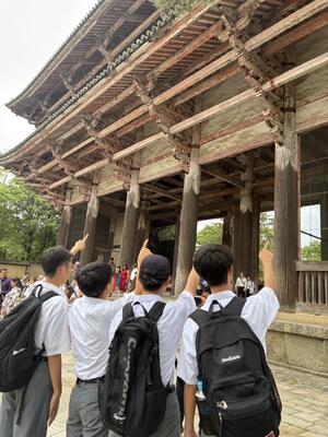 東大寺の鏡池前にて、クラス写真を撮りました。自由行動では、班ごとに奈良公園を散策しました。