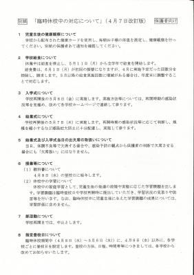 今後の状況によっては、引き続き休校延長等の対応もございますことを申し添えておきます。